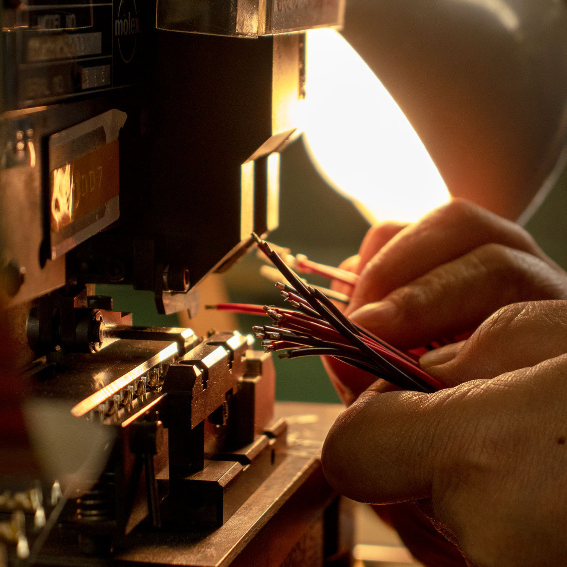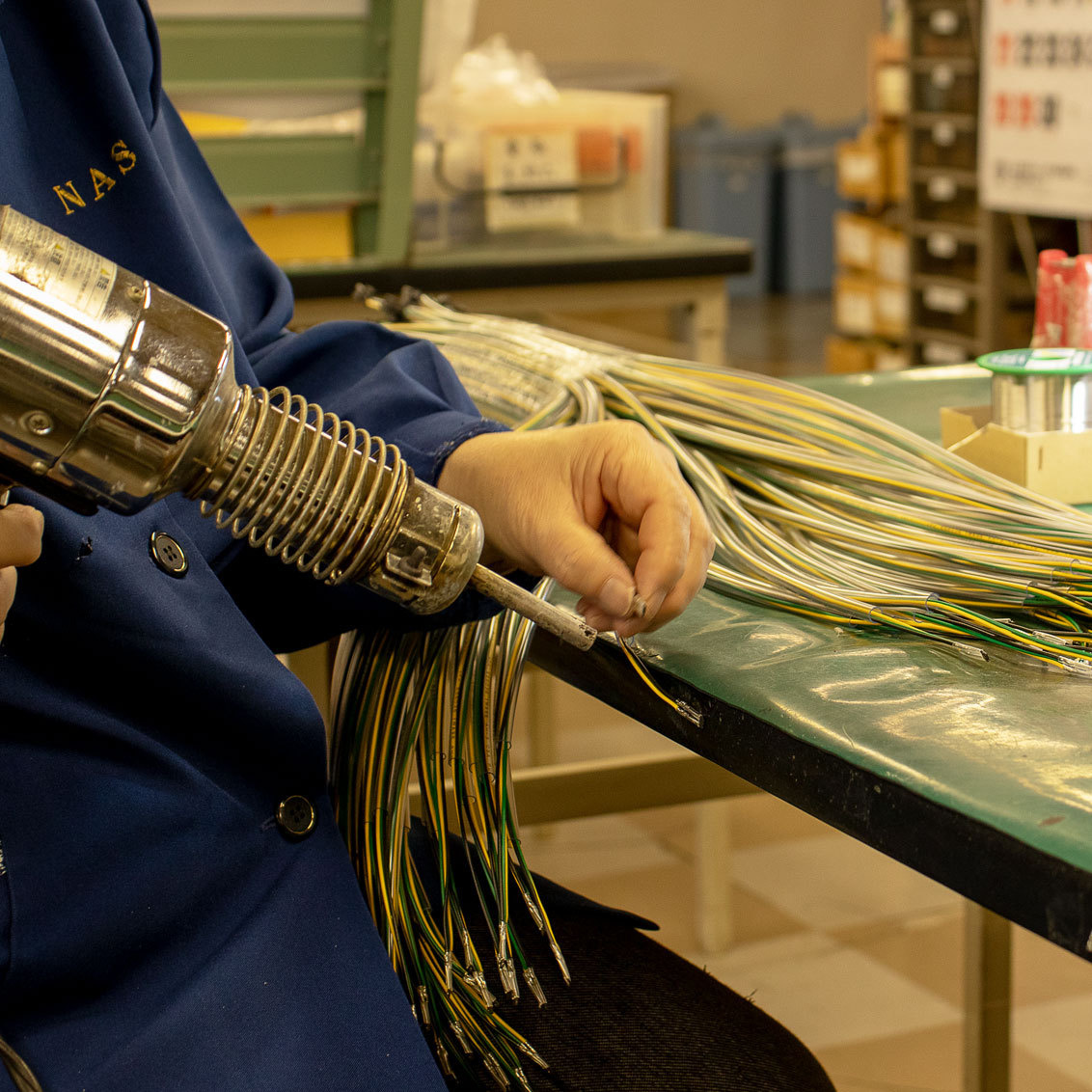 わたしたちはオーダーメイド製品を軸とし、制御盤の製作・ワイヤーハーネス加工・各種センサー加工を請け負っております。大量生産ではなく、少量多品種製造を得意とし、お客さまのニーズを把握し、ご提案から製作まで1個からでも承ります。製品の自工程保証を心がけ、自分の仕事での責任を果たせるよう作業に取り組みます。